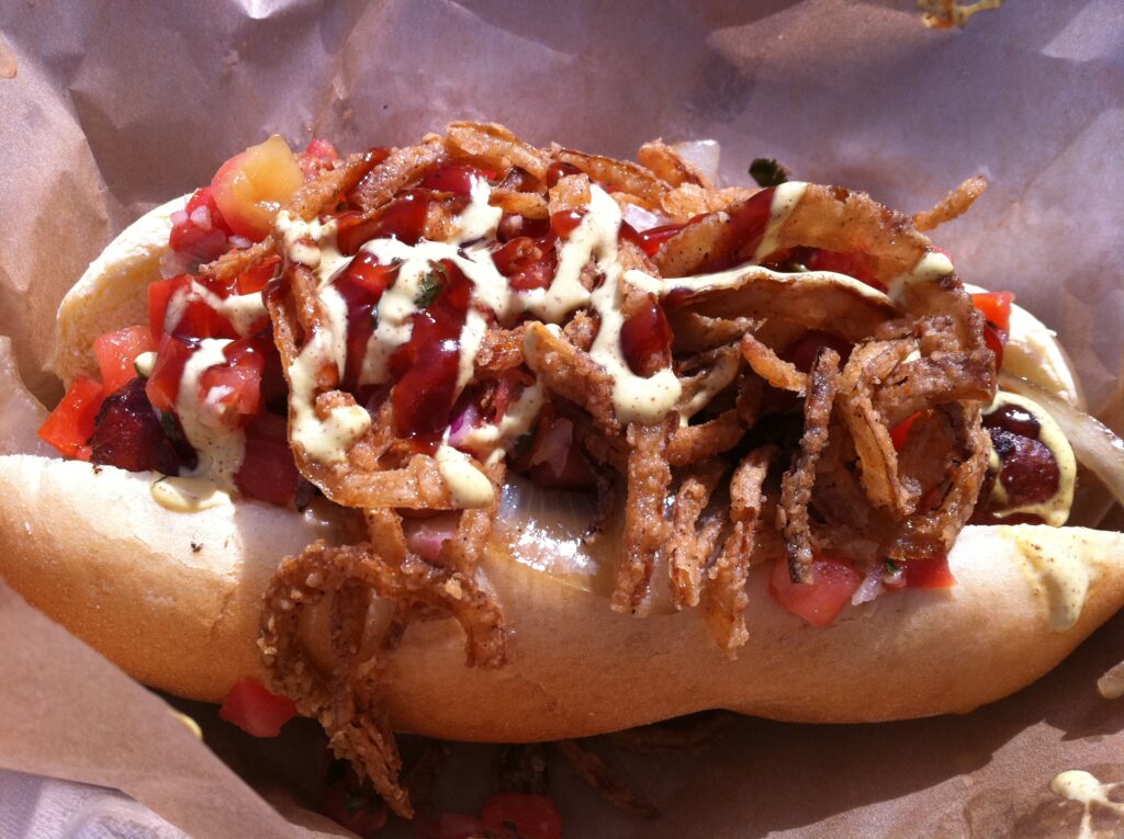 - Can be High in Calories: The hot dog with bacon is a high-calorie dish.