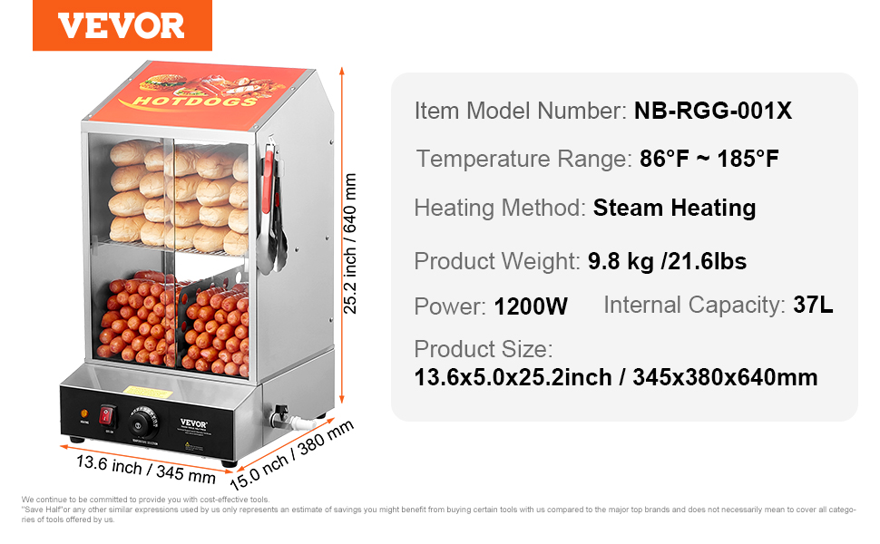 - Removable Hot Dog Basket and Bun Tray: These make it easy to load and unload hot dogs and buns, as well as clean the steamer. Benefit: Simplifies operation and maintenance, saving time and effort.