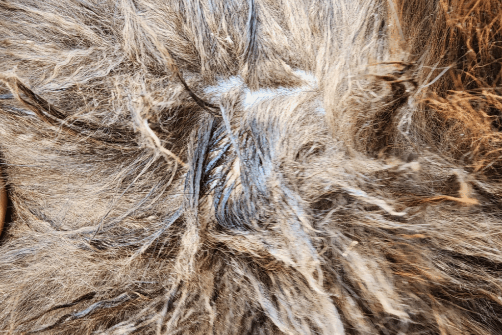 • Hair loss: The hair around the hot spot may be matted or missing due to the dog’s licking and scratching.