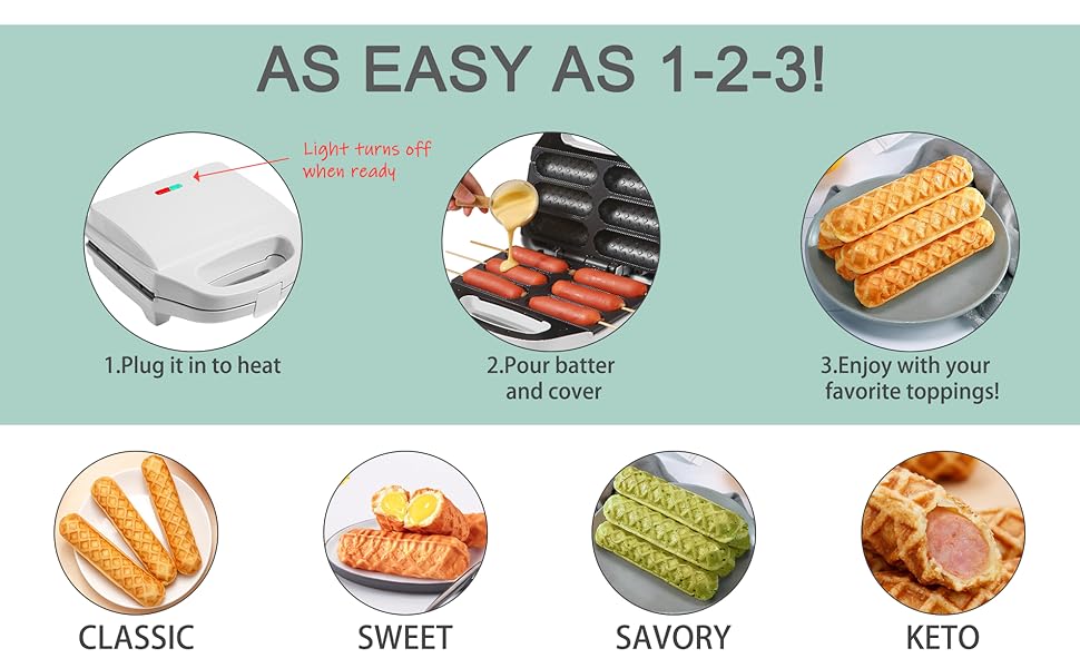 5. Fast Cooking Time: Produces waffle dogs in a matter of minutes.