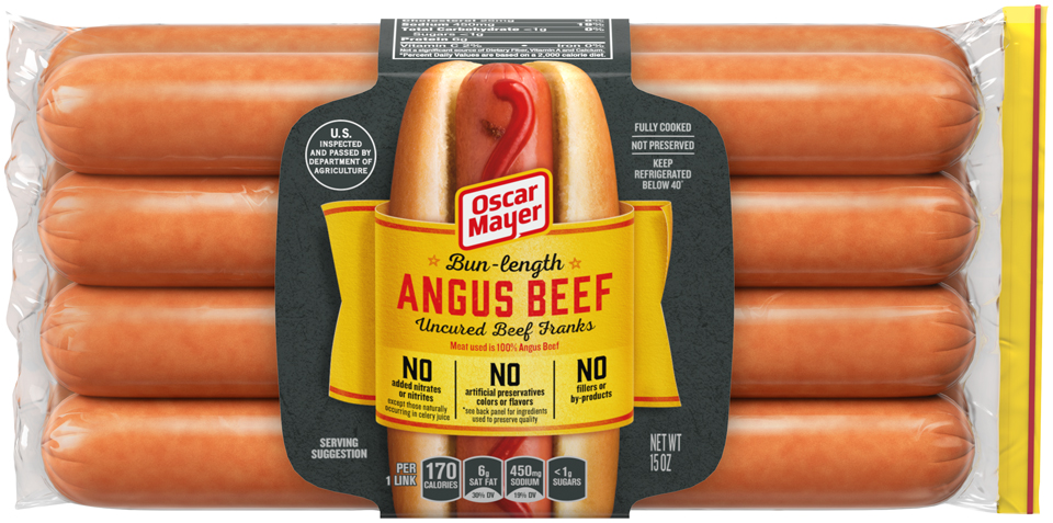 - A: Yes, Oscar Mayer offers lower-sodium versions of its beef hot dogs.